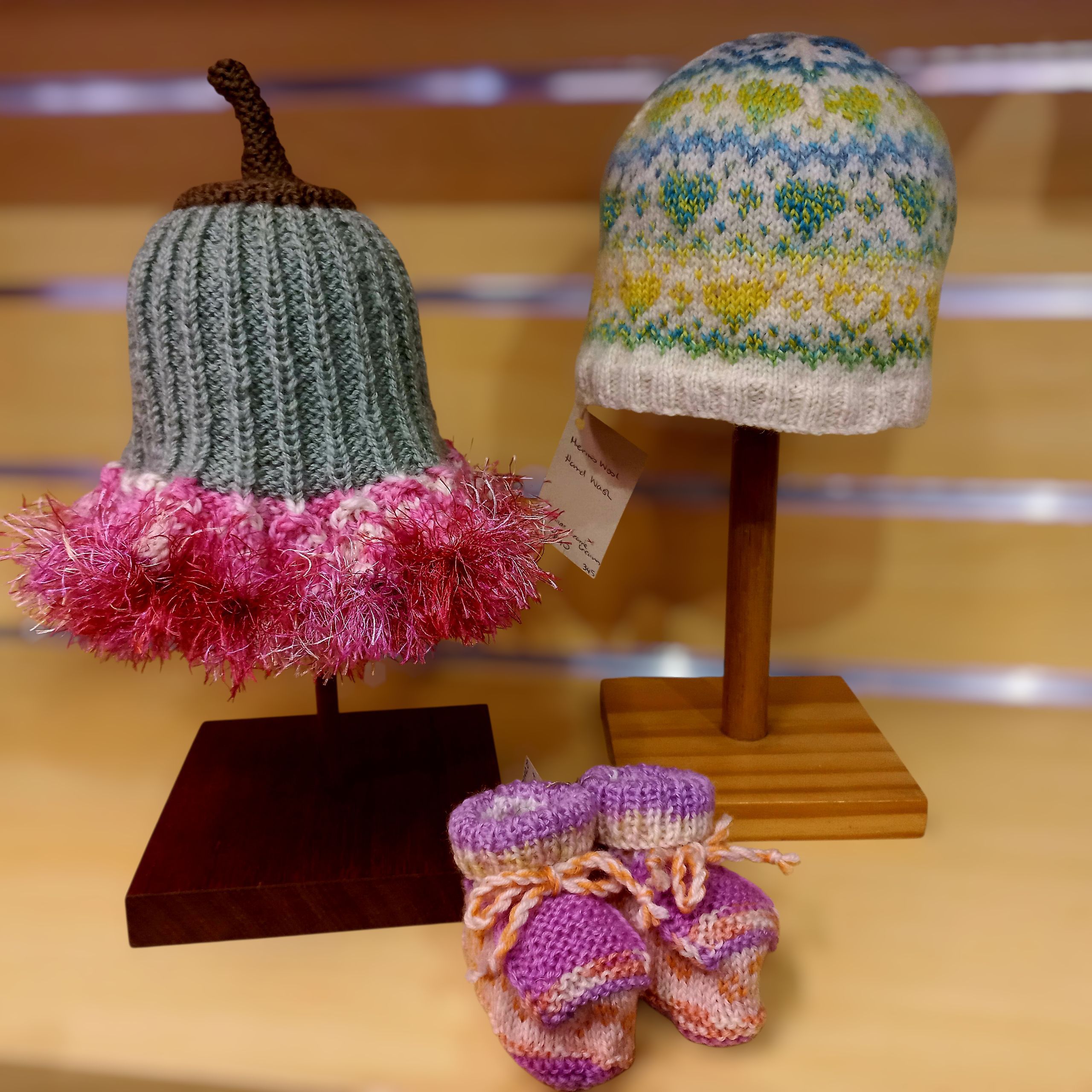 Our items are made from natural fibres. They range from small baby wear to adult jumpers, woven wraps and a wide selection of accessories including hats, scarves and socks. We also stock a good selection of homewares including throws, table runners, cushions, trivets, tea towels and cotton facecloths.